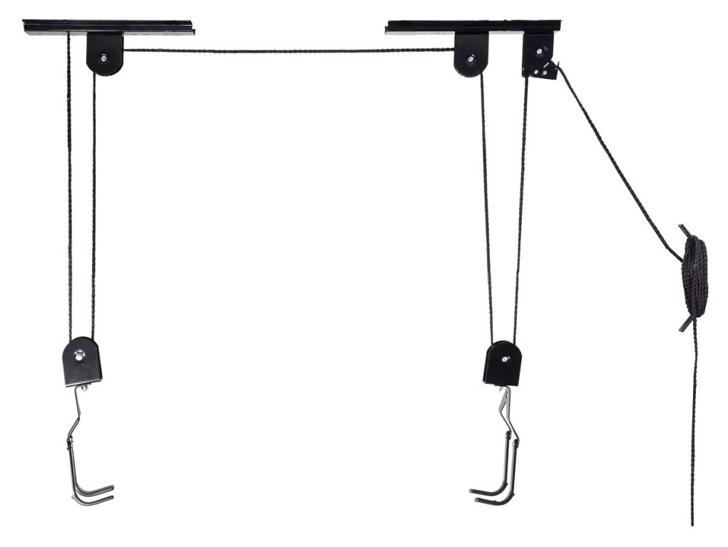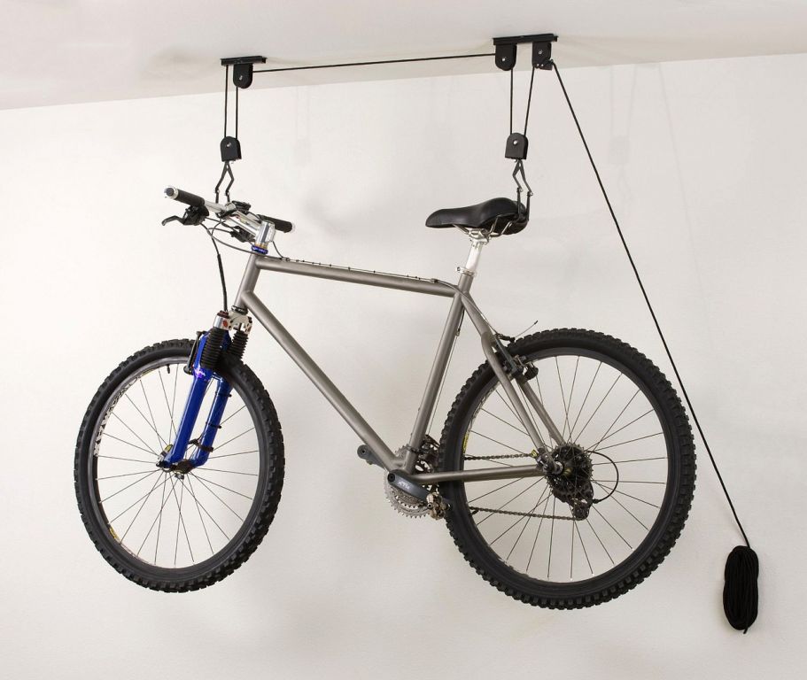 Uchwyt działa na zasadzie podnośnika i może z łatwością podnieść rower o wadze do 20 kg i umieścić go pod sufitem pomieszczenia. Wspornik montowany jest w sufitach stałych za pomocą śrub i kołków, najlepiej tak, aby zaczepy znajdowały się bezpośrednio nad siedziskiem i kierownicą. Za pomocą liny można w łatwy sposób manipulować zawieszonym kołem, dodatkowo urządzenie wyposażone jest w hamulec, który zapobiega ślizganiu się liny i spadaniu koła. Dzięki uchwytowi rower jest bezpiecznie przechowywany i praktycznie nie zajmuje miejsca.