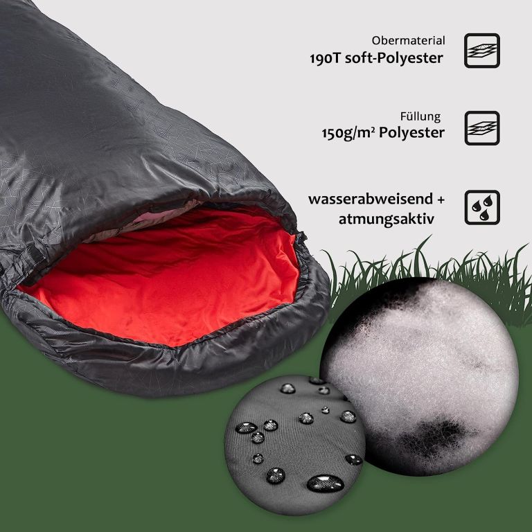 Wykonany z wodoodpornego i odpornego na rozdarcia poliestru i wypełniony wypełnieniem z pustych włókien, ten śpiwór jest stworzony, aby towarzyszyć Ci podczas wszystkich przygód na świeżym powietrzu.