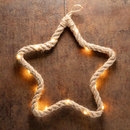 Wytrzymała lina konopna i wysokiej jakości diody LED gwarantują długą żywotność produktu. Praktyczny timer pozwala ustawić czas świecenia, a zasilanie na baterie umożliwia montaż w dowolnym miejscu bez kabli. Produkt przeznaczony do użytku wewnętrznego.