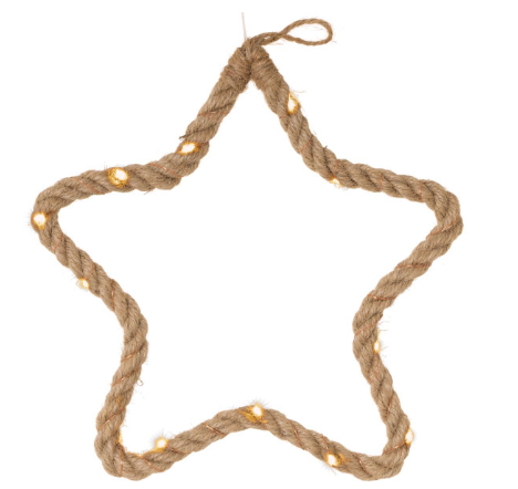 Świąteczna gwiazda LED z liny konopnej – przytulne światło i swoboda aranżacji dzięki zasilaniu na baterie.