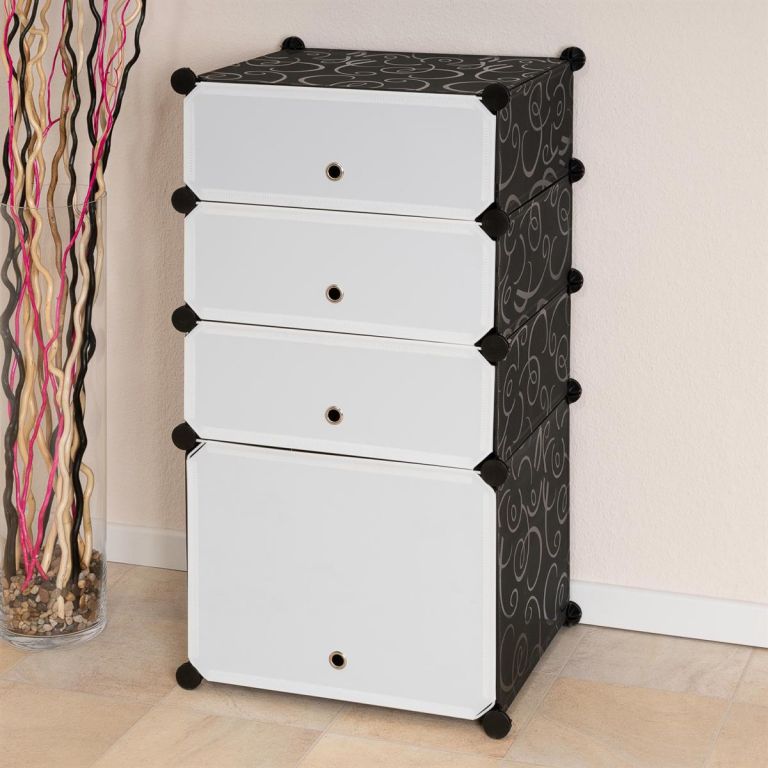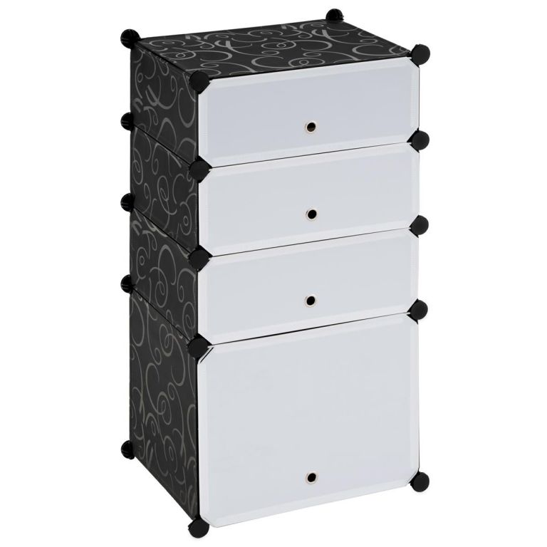 Możesz dostosować szafkę do swoich potrzeb, może być zamknięta lub otwarta, pionowa lub pozioma. Możesz także połączyć kilka półek. Instalacja jest łatwa, bez wiercenia, klejenia i wkręcania. Materiał sprawia, że szafka jest łatwa w utrzymaniu.