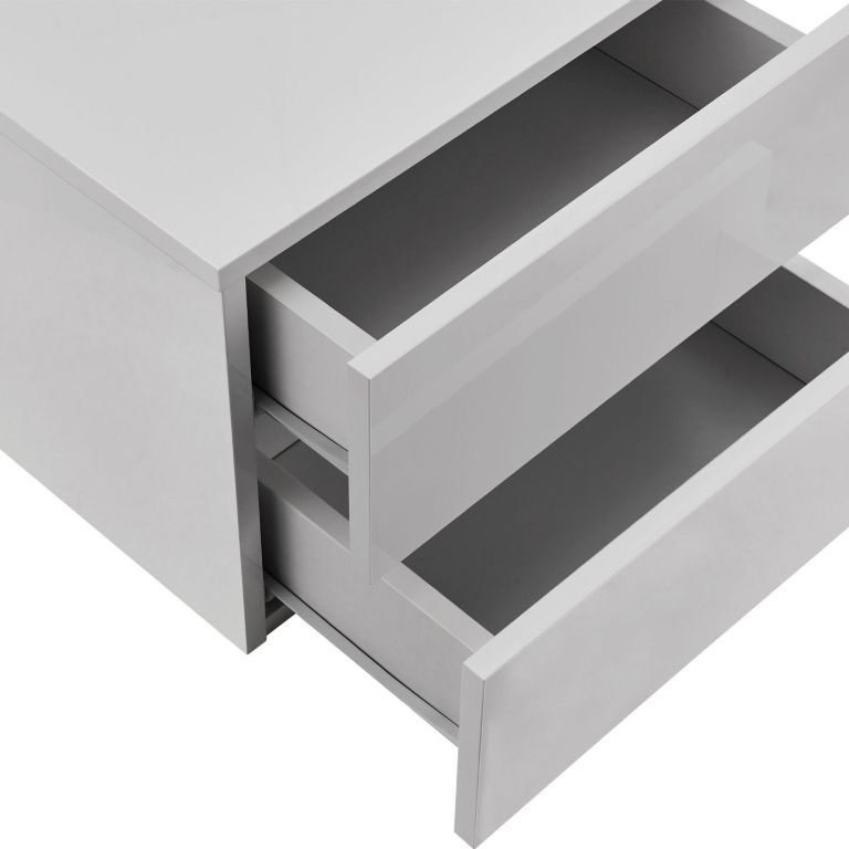 Odmień swoją sypialnię dzięki praktycznej i eleganckiej szafce nocnej, którą łatwo zamontujesz na ścianie. Dwie szuflady pomieszczą wszystkie drobiazgi, a biały kolor rozjaśni wnętrze i doda mu nowoczesności.