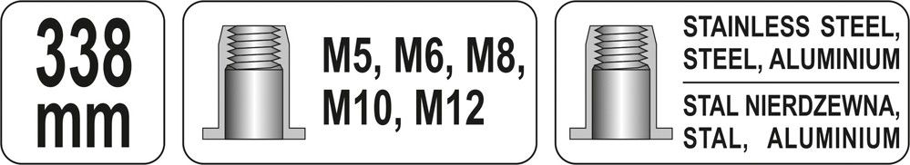 Wysokiej jakości szczypce do nitowania. Długość szczypiec 338 mm, korpus wykonany z aluminium ADC12, rękojeści ze stali węglowej. Całość przechowywana jest w praktycznej walizce.