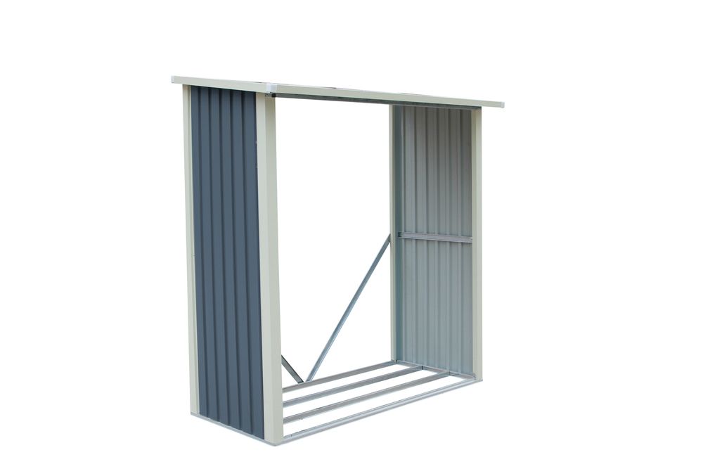 Drewutnia wykonana jest z wysokiej jakości blach stalowych i można z niej zrobić drewno. Jest wyposażony w rynny i mocne paski. Dzięki drewutniowi drewno pozostaje suche w każdą pogodę. Zaletą produktu jest prosty montaż.