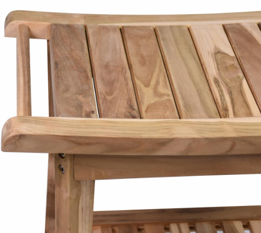 Solidna konstrukcja z naturalnego drewna tekowego gwarantuje trwałość i łatwość pielęgnacji. Prosty montaż i możliwość użycia jako półki na buty czy dodatkowego miejsca do przechowywania sprawiają, że to wszechstronny wybór do każdego wnętrza.