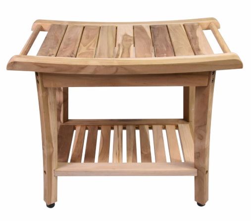 Wyjątkowy taboret z drewna tekowego z półką, idealny do łazienki i przedpokoju.