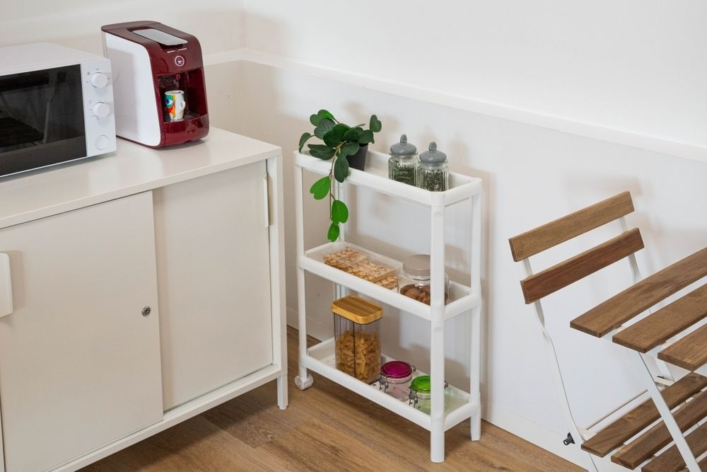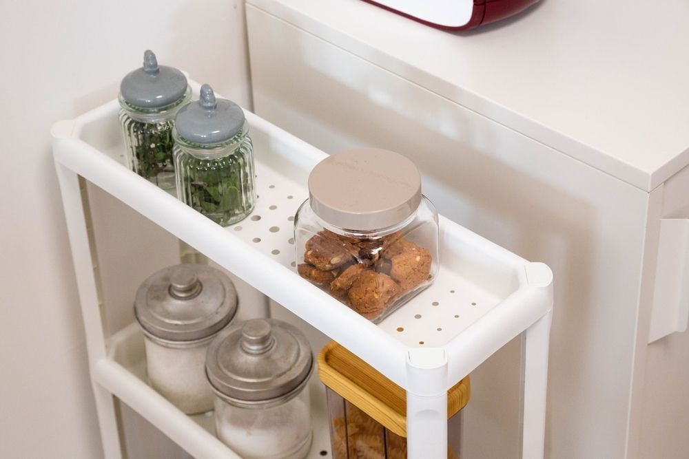 Trzypoziomowy regał z kółkami, do efektywnego wykorzystania małych przestrzeni i łatwej organizacji w domu...