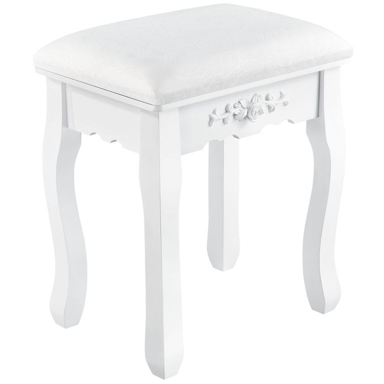 Toaletka kosmetyczna Julia z lustrem i taboretem, biała MDF