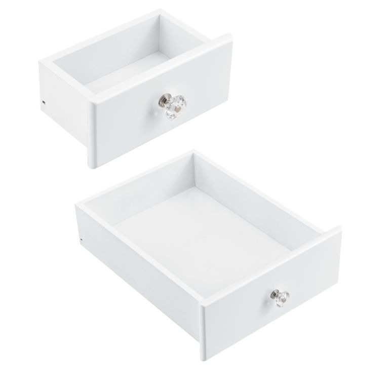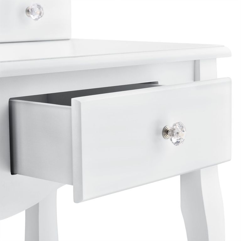 Wytrzymała płyta MDF pokryta białym lakierem gwarantuje odporność na zarysowania. Cztery szuflady pozwalają na wygodne przechowywanie kosmetyków. Prosty montaż i łatwa pielęgnacja.
