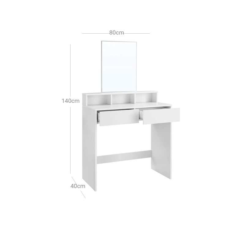 Toaletka VASAGLE biała z lustrem i szufladami 80x40x140 cm