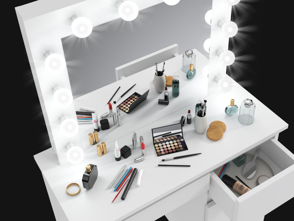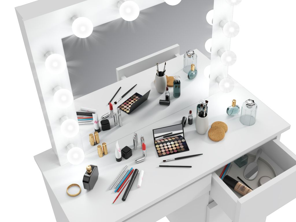 Profesjonalne stanowisko do makijażu: LED-owe oświetlenie i duże lustro tworzą warunki jak w salonie wizażu.