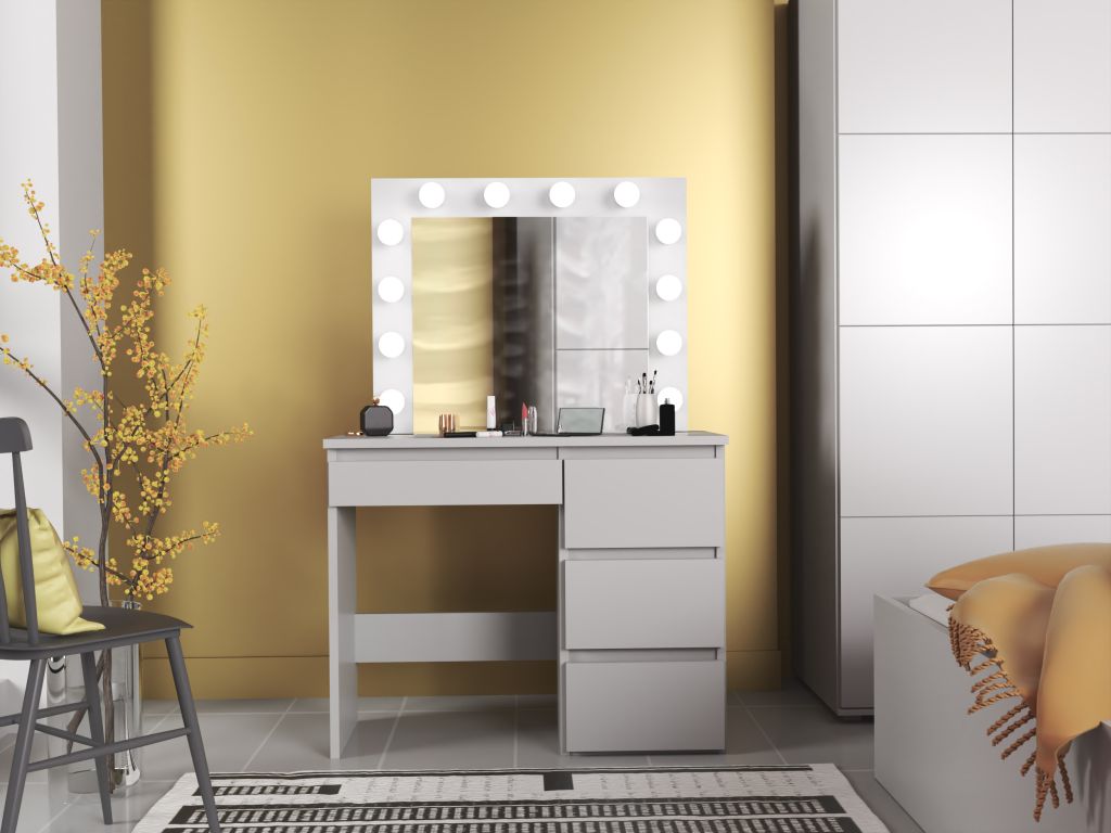 Elegancka i funkcjonalna toaletka do makijażu, która świetnie sprawdzi się w sypialni, pokoju młodzieżowym, garderobie czy salonie kosmetycznym. Jej uniwersalny design pozwala na dopasowanie do aranżacji w stylu nowoczesnym, klasycznym czy loftowym.