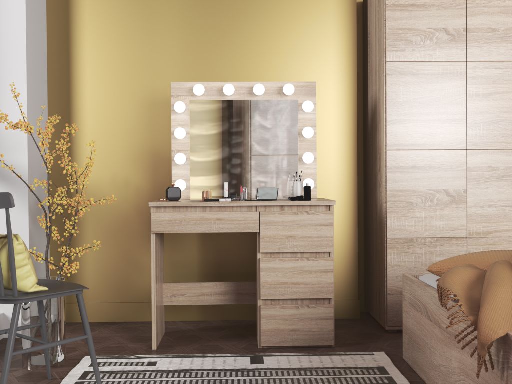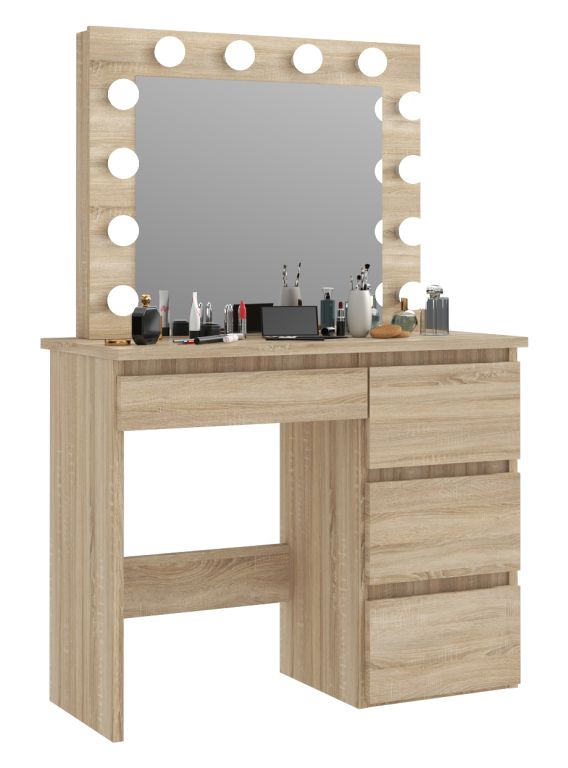 Toaletka z lustrem LED do makijażu dąb sonoma