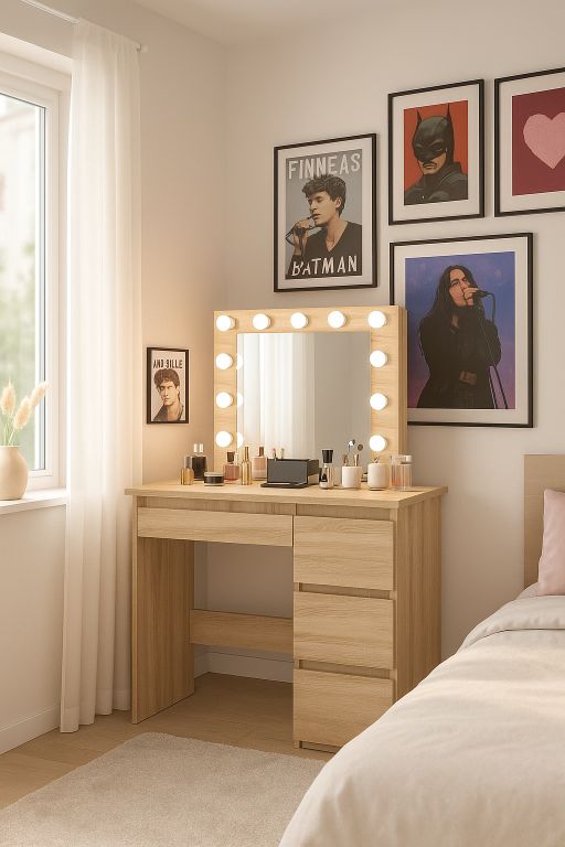 Szukasz prezentu, który naprawdę zachwyci Twoją córkę? Toaletka z lustrem LED to idealny wybór zarówno dla młodych dziewczyn zaczynających swoją przygodę z makijażem, jak i dla kobiet, które marzą o własnym kąciku piękna. Duże lustro w stylu Hollywood z podświetleniem LED tworzy atmosferę profesjonalnego salonu kosmetycznego – bez wychodzenia z domu, w sypialni, garderobie czy pokoju nastolatki.