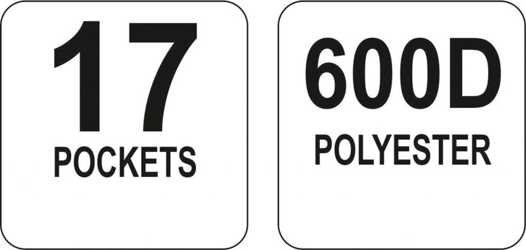 Praktyczna otwarta torba narzędziowa wykonana z wytrzymałego poliestru 600D ze wzmocnionym, odpornym na wilgoć dnem. Torba wyposażona jest w 17 kieszeni o różnym przeznaczeniu. Rączka wykonana jest z aluminium i jest przystosowana do utrzymania kształtu torby nawet podczas przenoszenia ciężkich ładunków.