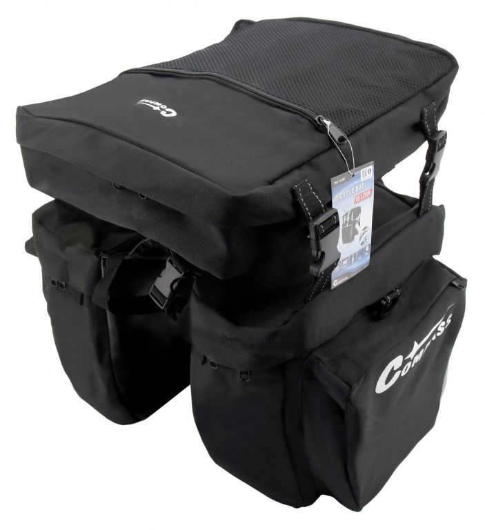 Przednią część torby oraz górną część torby dodatkowo uzupełniają dodatkowe kieszenie z siatki. Kieszenie oprócz siateczkowych zapinane są na zamek błyskawiczny. Dzięki tej torbie rowerowej można przewozić duże ładunki, takie jak zakupy, których w innym przypadku nie można bezpiecznie przejechać na rowerze. Dolna część wyposażona jest w regulowane klamry, ułatwiające zapięcie do różnych wymiarów nosideł. Dzięki zastosowanemu materiałowi, szczególnie od środka, torba jest wytrzymała i łatwa do prania.