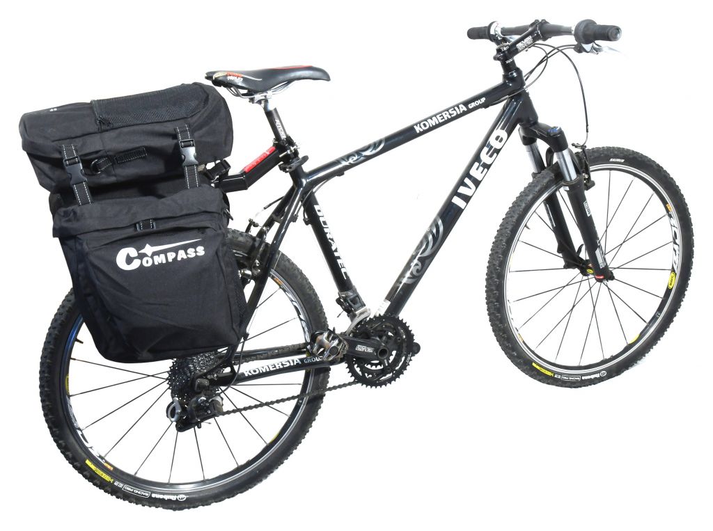 Pojemna torba rowerowa z odpinaną górną torbą, na bagażnik rowerowy.Torba wyposażona jest w boczne kieszenie i odpinaną górną torbę.