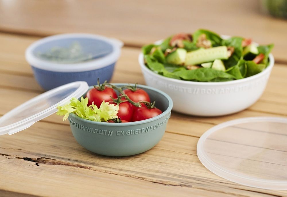 Praktyczny pojemnik do bezpiecznego i ekologicznego przechowywania żywności. Wysokiej jakości uszczelka pokrywki zapobiega wyciekaniu płynów i nieprzy