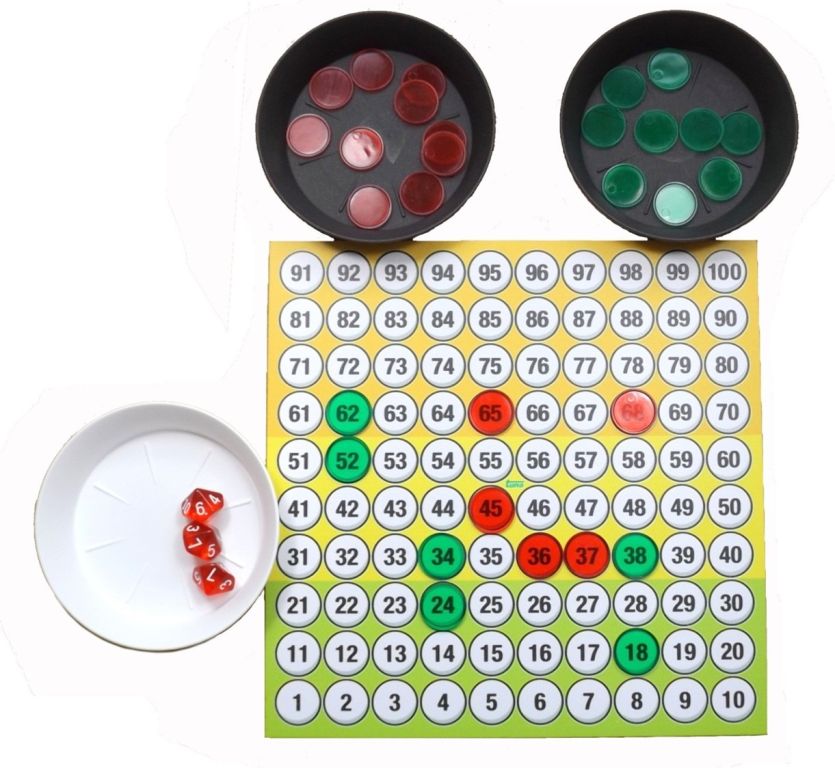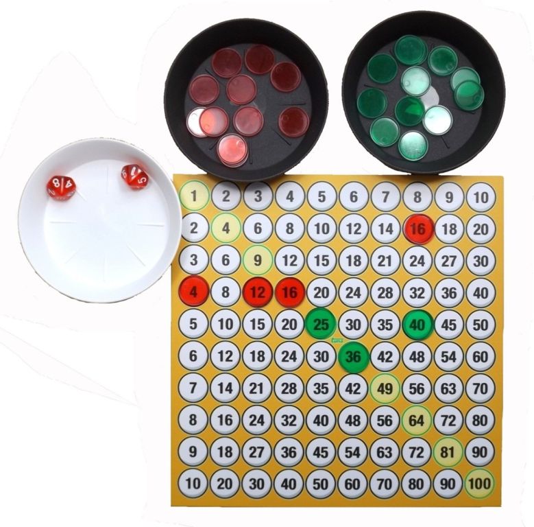 Gra toczy się z przezroczystymi żetonami, a umieszczenie żetonu następuje po rzuceniu kostką i sumie lub wielokrotności wyrzuconych wartości. Kości mają wartości od 1 do 10. W grach z dodawaniem i odejmowaniem trzy z tych kości są rzucane jednocześnie, a suma wartości kostek jest dodawana lub odejmowana od już postawionych żetonów lub żetonu. W grach z mnożeniem i dzieleniem dwie z tych kostek są rzucane, a żetony są umieszczane na planszy zgodnie z mnożnikiem lub udziałem.