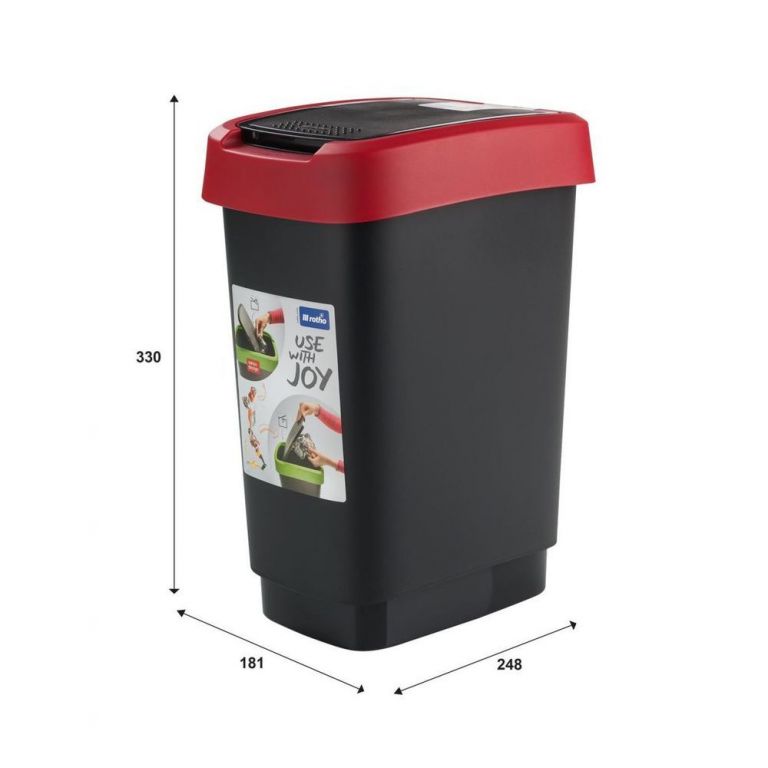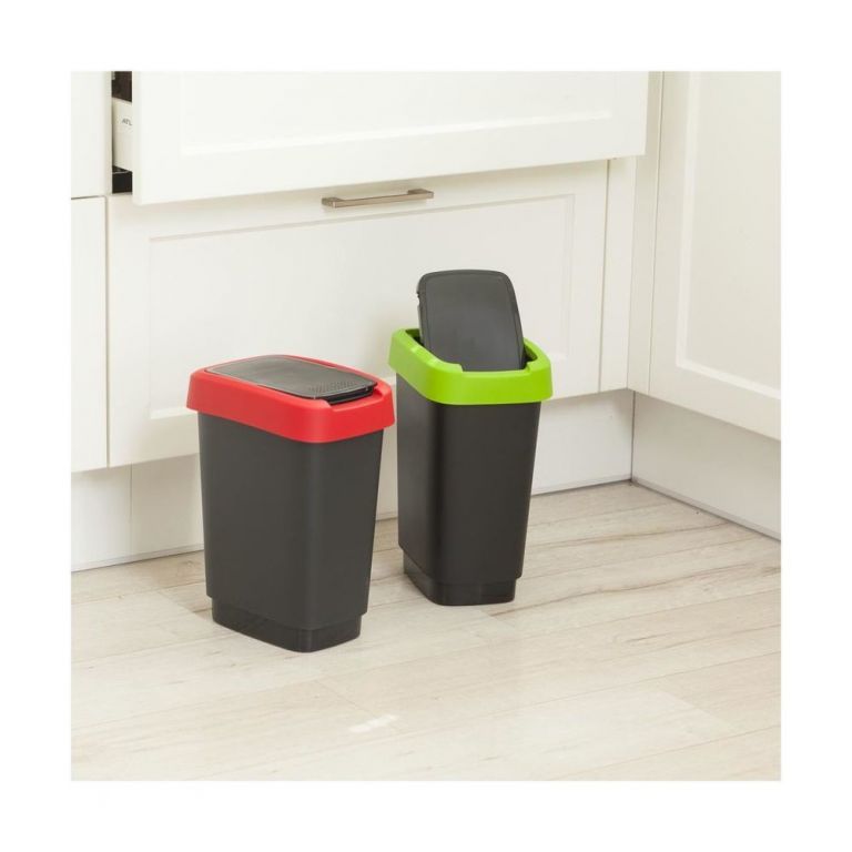 Plastikowy kosz na śmieci z pokrywą na zawiasach i dwoma sposobami otwierania kosza o pojemności 10 litrów. Wysokiej jakości materiał i design szwajcarskiej marki Rotho.