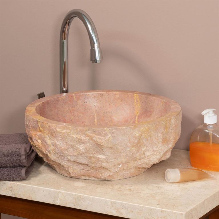 Luksusowy dodatek do Twojej łazienki. Umywalka marmurowa z eleganckimi odcieniami beżu i różu. Naturalny design oraz ręczne wykonanie sprawiają, że je