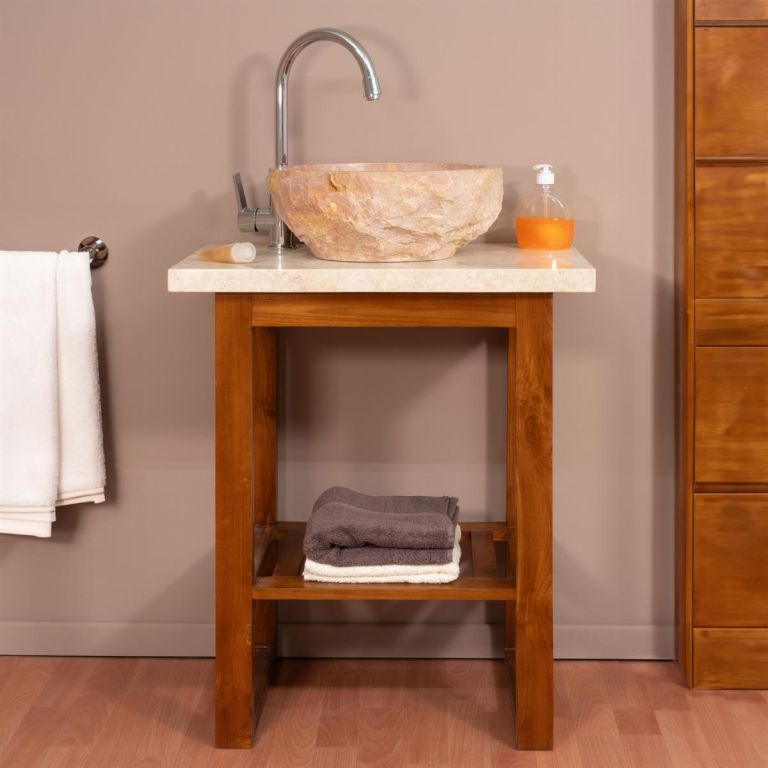 Twoja kreatywność nie zna granic. Zaprojektuj swoją łazienkę na jasną lub ciemną, w nowoczesnym stylu lub w stylu wiejskim. Masywna umywalka z naturalnego kamienia, wykonana z delikatnego marmuru, jest polerowana wewnątrz i naturalna na zewnątrz. Ponieważ każda umywalka jest unikalna, wymiary i odcienie kolorów mogą się nieznacznie różnić. Kolor kamienia jest w każdym przypadku wyjątkowy i może wahać się od beżowego/żółtego po odcienie czerwonawo-brązowe. Różnice w ziarnistości, odcieniu i strukturze są symbolem indywidualności każdej umywalki.