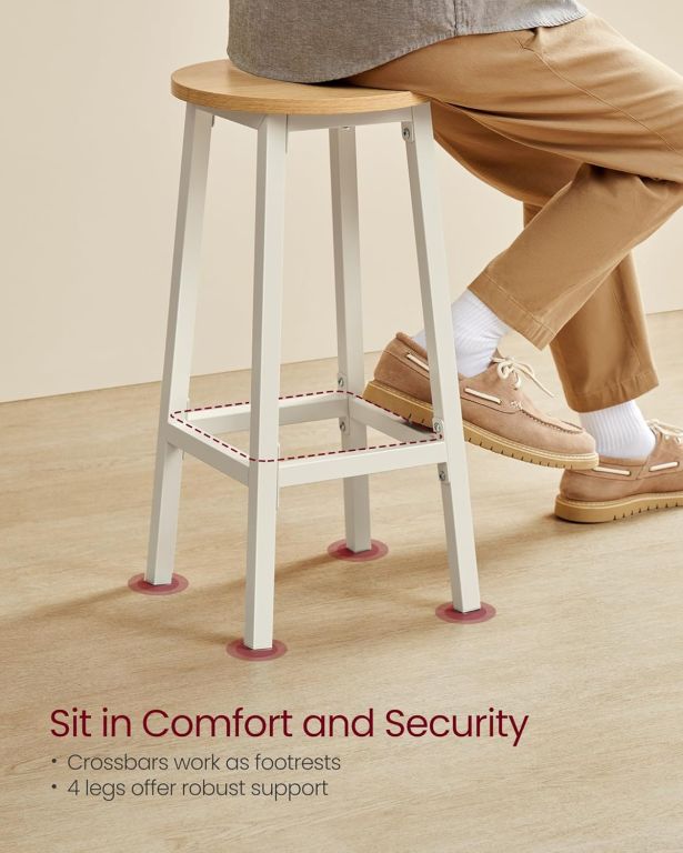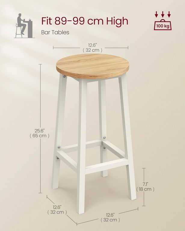 Podkreśl charakter swojej kuchni dzięki krzesłom barowym VASAGLE. Połączenie bieli i naturalnego dębu nadaje wnętrzu świeżości i lekkości. Kompaktowe wymiary sprawiają, że krzesła łatwo wsuniesz pod blat, oszczędzając miejsce.