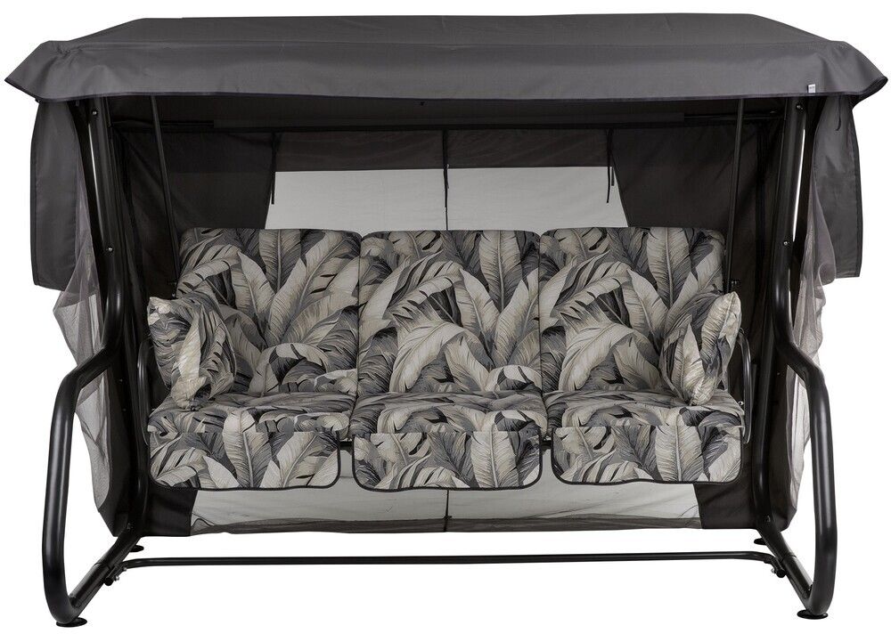 VENEZIA Huśtawka ogrodowa, metalowa, szara z liśćmi
