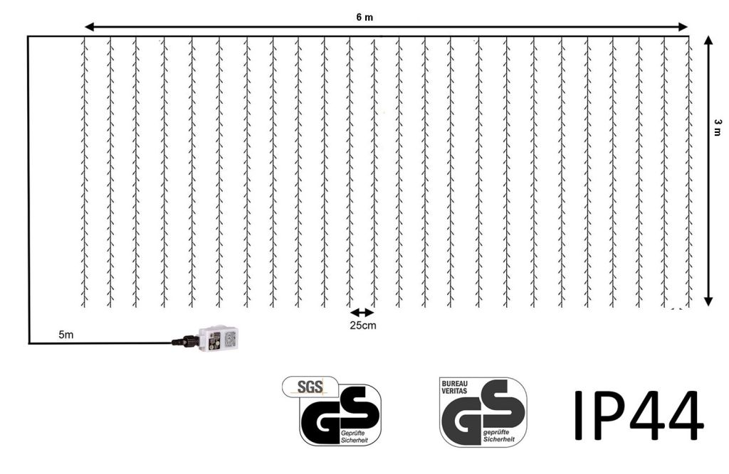 VOLTRONIC Świąteczna świetlna kurtyna 6x3m,600 LED, kolorowy