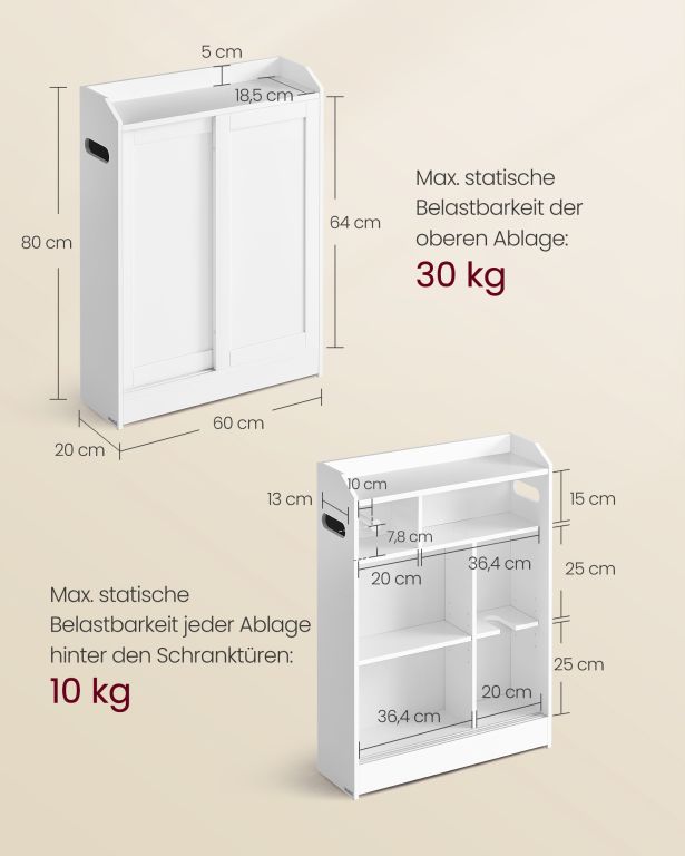 MDF wysokiej jakości gwarantuje trwałość i odporność na wilgoć. Drzwi przesuwne zapewniają wygodny dostęp, a regulowane półki pozwalają na indywidualne ustawienie wysokości. Montaż nie sprawi trudności dzięki jasnej instrukcji.