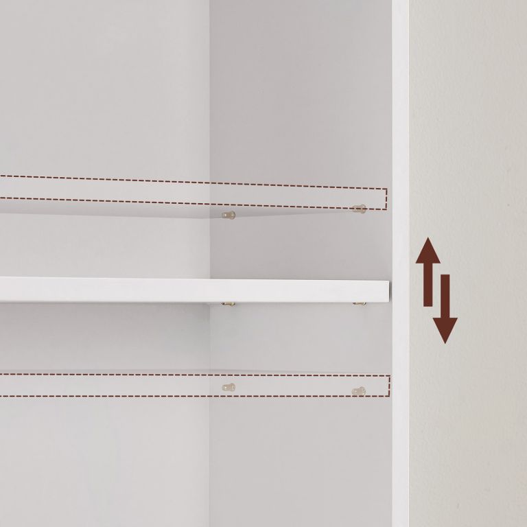 Sześć poziomów przechowywania pozwala efektywnie wykorzystać przestrzeń. Półki są regulowane na wysokość (oprócz środkowej), więc bez problemu zmieścisz większe przedmioty. Wytrzymała płyta wiórowa zapewnia stabilność i trwałość. Montaż jest prosty dzięki czytelnej instrukcji.