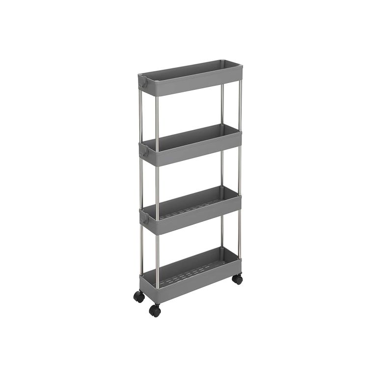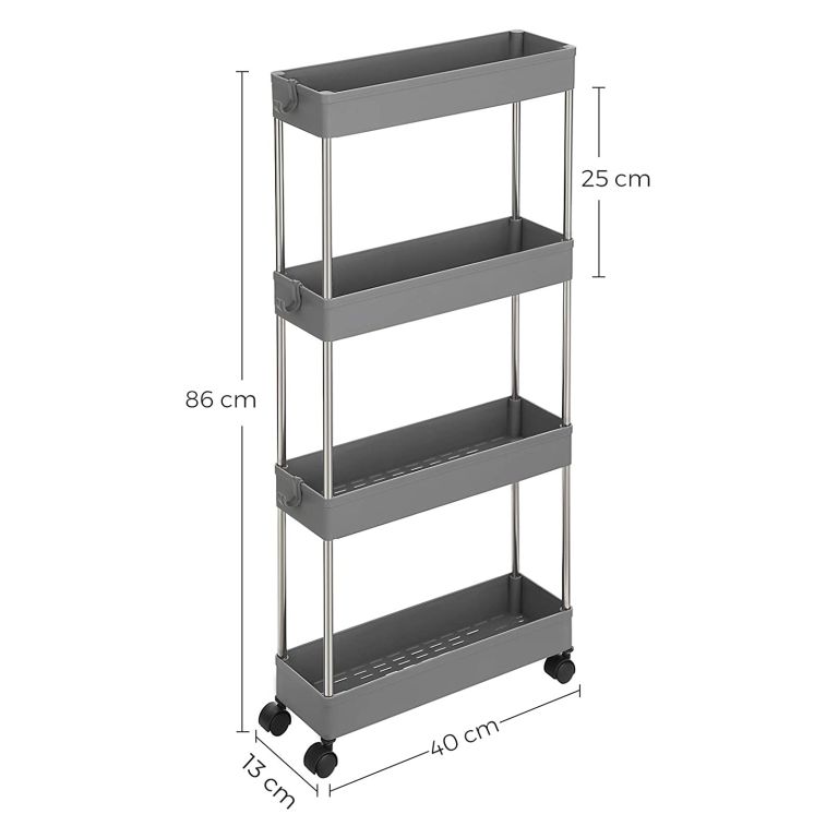 Wąski szary wózek na kółkach 4 półki 40x12,5x88 cm 20 kg