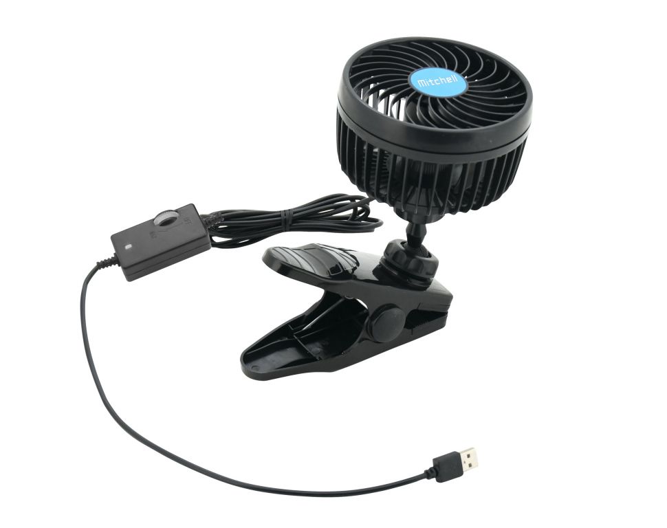 Wentylator ma płynną regulację prędkości, a podwójny przegub kulowy ułatwia obracanie go w dowolnym kierunku.
