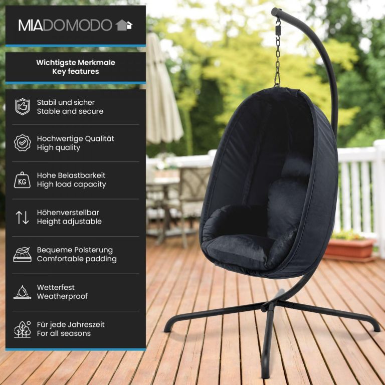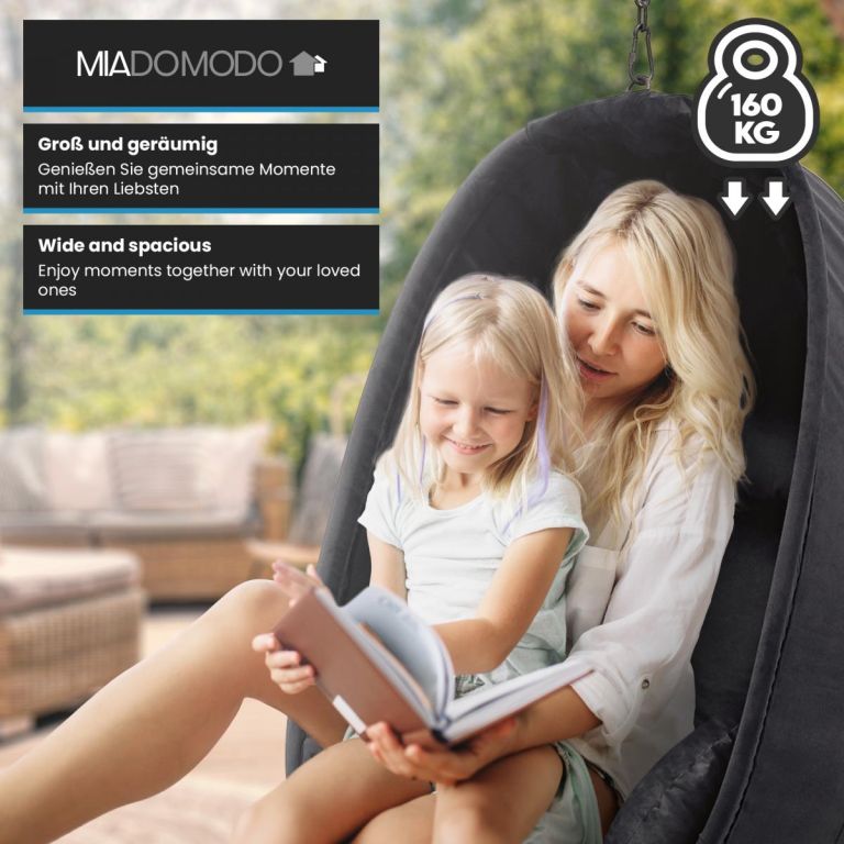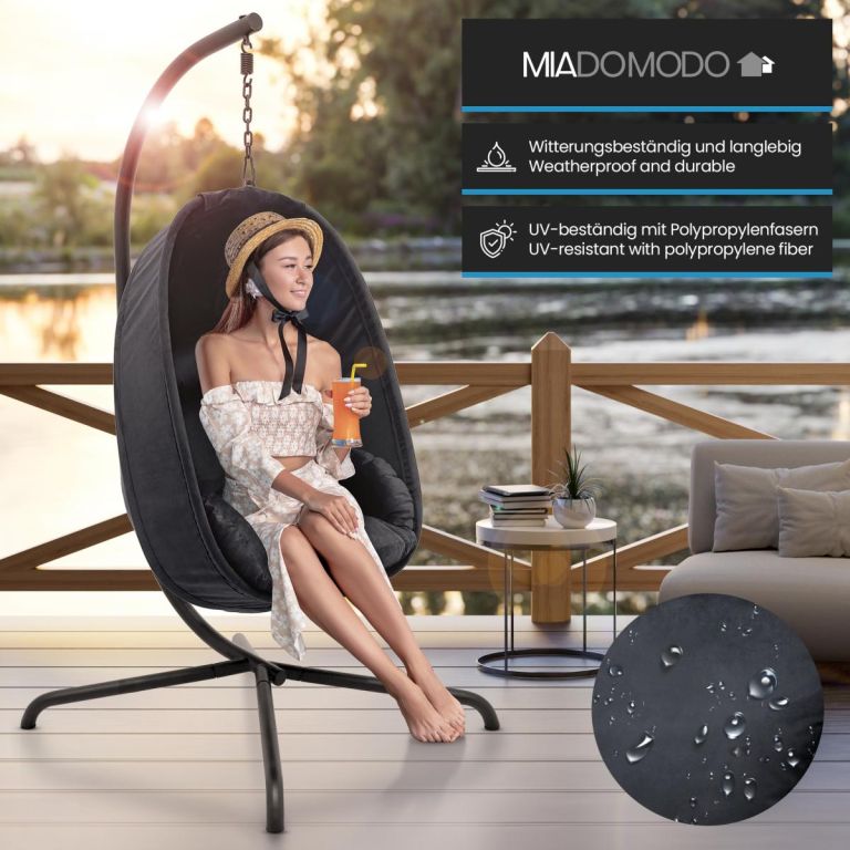 Wiszący fotel bujany MIADOMODO ciemnoszary, nośność 160 kg