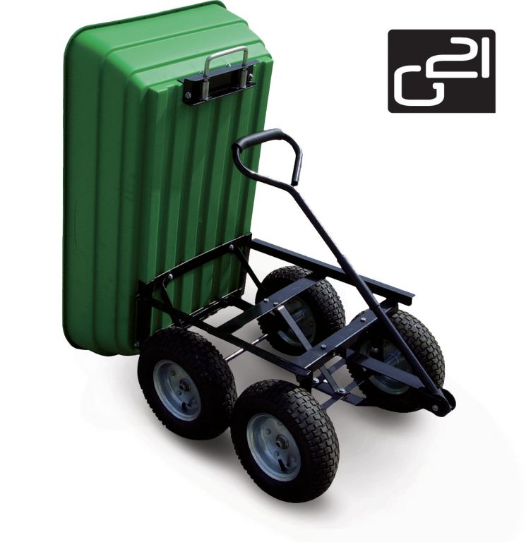 WÓZEK OGRODOWY G21 GA 75. Bardzo popularny i praktyczny pomocnik do Twojego ogrodu! Wózek ręczny gospodarczy, dwuosiowy - czterokołowy, przyczepka. Idealny do wszelkich prac w gospodarstwie, ogrodzie. Wózek jest idealny do przewożenia skoszonej trawy, drewna, ziemi, kamieni, itp. Wyposażony w funkcję kiprowania. Podczas kiprowania, jest stabilny i nie wywraca się.