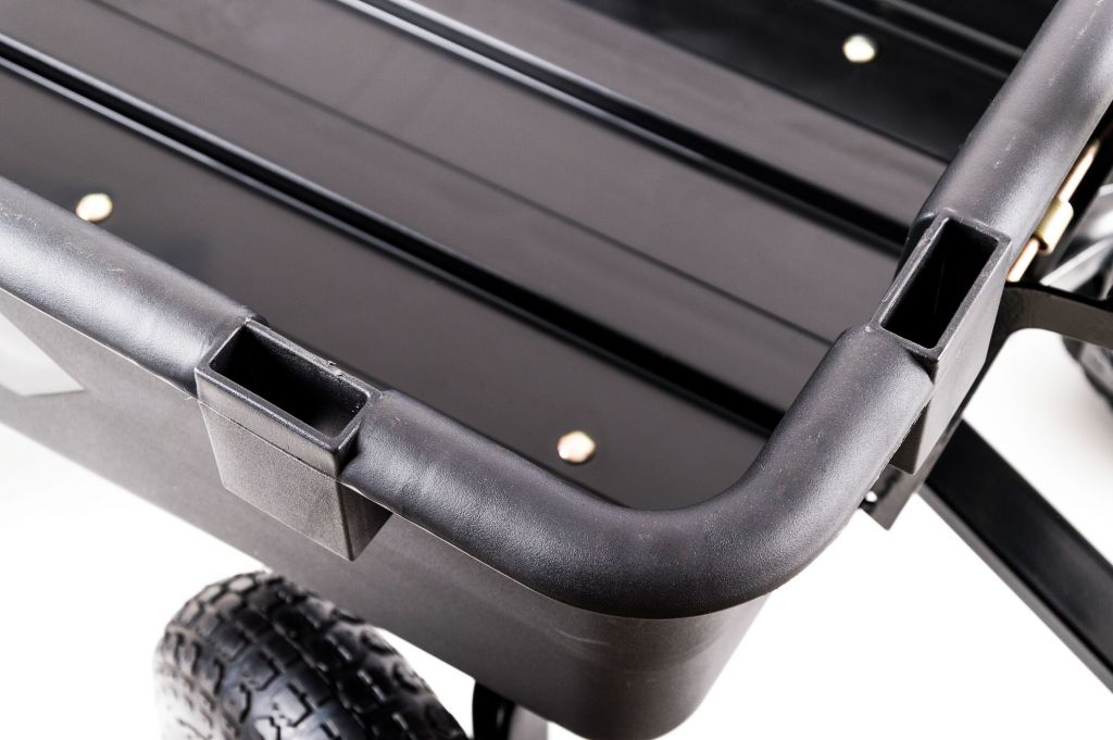 Wózek ogrodowy G21 GA 120 posiada praktyczną, wodoszczelną skrzynię uchylną o pojemności 120 li 4 nadmuchiwane koła na dwóch osiach, z których jedna to kierownica. Dzięki temu wózek jest łatwy w obsłudze oraz bardzo łatwy i wygodny. Dzięki swojej nośności z łatwością przenosi worki z cementem, narzędziami roboczymi i innymi materiałami. Solidny korpus wykonany z utwardzanego wytrzymałego tworzywa sztucznego nadaje się do transportu materiałów stałych, półpłynnych lub sypkich. Praktycznie zaprojektowany mechanizm przechylania ułatwia obsługę podczas rozładunku. Ponadto prowadnicę z uchwytem można łatwo przekształcić w dyszel, a wózek można podłączyć do traktora ogrodowego. Ogólnie rzecz biorąc, wózek ogrodowy G21 GA 120 to bardzo dobrze zaprojektowany wózek, który dzięki zastosowanym trwałym materiałom, solidnej konstrukcji i praktycznemu wywrotowi o pojemności 120 litrów wykona większość ciężkiej pracy podczas przemieszczania i transportu ładunków.