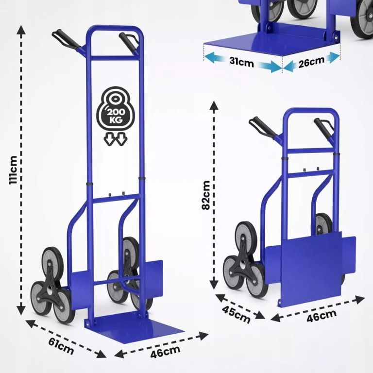 Przenoszenie ciężkich rzeczy po schodach nigdy nie było prostsze! Ten wózek schodowy to nieoceniona pomoc podczas przeprowadzek, remontów czy codziennej pracy. Potrójne koła zapewniają płynność ruchu, a ergonomiczne uchwyty dbają o komfort dłoni.