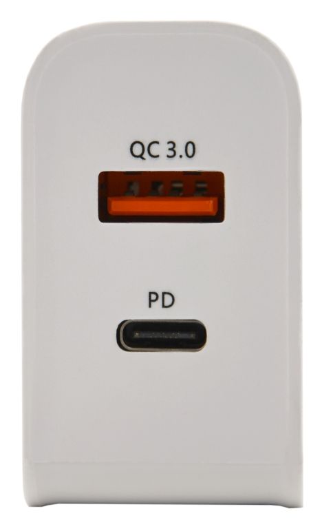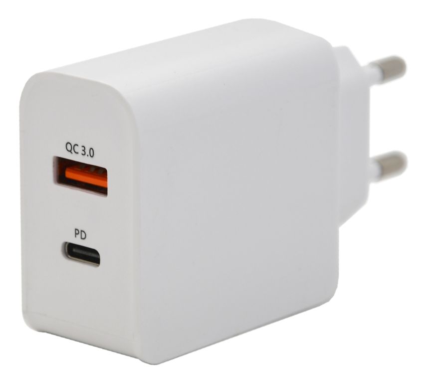 Kompaktowa wtyczka QC 3.0/PD do gniazd 230 V umożliwia ładowanie popularnych urządzeń USB-A i USB-C. Technologia QC 3.0 (Quick Charge) i PD (Power Delivery) oferuje wydajne ładowanie urządzeń USB. Urządzenie jest w stanie zasilać lub ładować telefony komórkowe, odtwarzacze MP3 i inne urządzenia zdolne do ładowania lub zasilania za pomocą kabla USB.