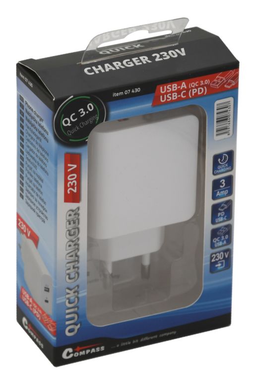 Wtyczka QUICK CHARGE 3.0 230V USB-A / USB-C 18W