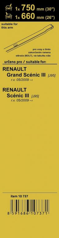 Zestaw dwóch płaskich wycieraczek typu Flat (kierowca + pasażer) ze specjalną nasadką. Zafunduj sobie dostawę tych wysokiej jakości wycieraczek. Długości wycieraczek i system mocowania wieszaków są dostosowane do tych wybranych samochodów - Renault Grand Scénic III [J95] 05/09, Renault Scénic III [J95] 05/09