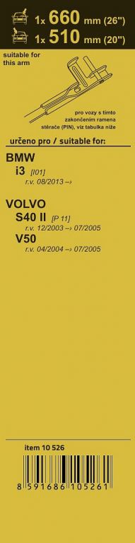 Zestaw dwóch płaskich podwójnych wycieraczek (kierowca + pasażer) ze specjalnym mocowaniem. Zafunduj sobie dostawę tych wysokiej jakości wycieraczek. Długości wycieraczek oraz system mocowania wieszaków dostosowane są do tych wybranych aut - BMW i3 [I01] 08/13, Volvo S40 II [P 11] 12.03 - 07.05, Volvo V50 04.04 - 07.05