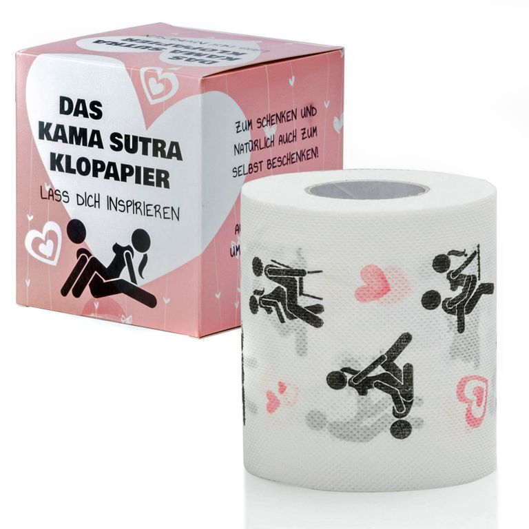 Niewiele jest miejsc na świecie, które mogą cię zabawić i znieść trochę zabawy, jak choćby spokojne miejsce – w końcu często spędzasz tam wiele godzin (bardziej mężczyźni niż kobiety). Co może być zabawniejszego niż rolka oświecającego papieru toaletowego, która otwiera motyw tak ostry, jak to, co kończy się na papierze. Każdy nowy arkusz przedstawia nową pozycję seksualną indyjskiego nauczyciela erotycznego Kamasutry, reprezentowanego przez zabawną komiczną parę. Jak dobrze wiadomo, stanowiska dla członków kultur zachodnich bez dobrego kręgarza lub rocznego biletu na lokalne zajęcia jogi są trudne do opanowania - ale oglądanie jest całkowicie bezbolesne. Niektórzy lubią chować się w toalecie ze smartfonami i innymi zabawkami. Dzięki temu papierowi toaletowemu wizytę można wydłużyć nawet dłużej niż wymagany czas wizyty. Papier może być używany na imprezie jako zabawny dodatek. Wykorzystywany jest również do klasycznego żartu na noc poślubną: łóżka owiniętego papierem toaletowym.