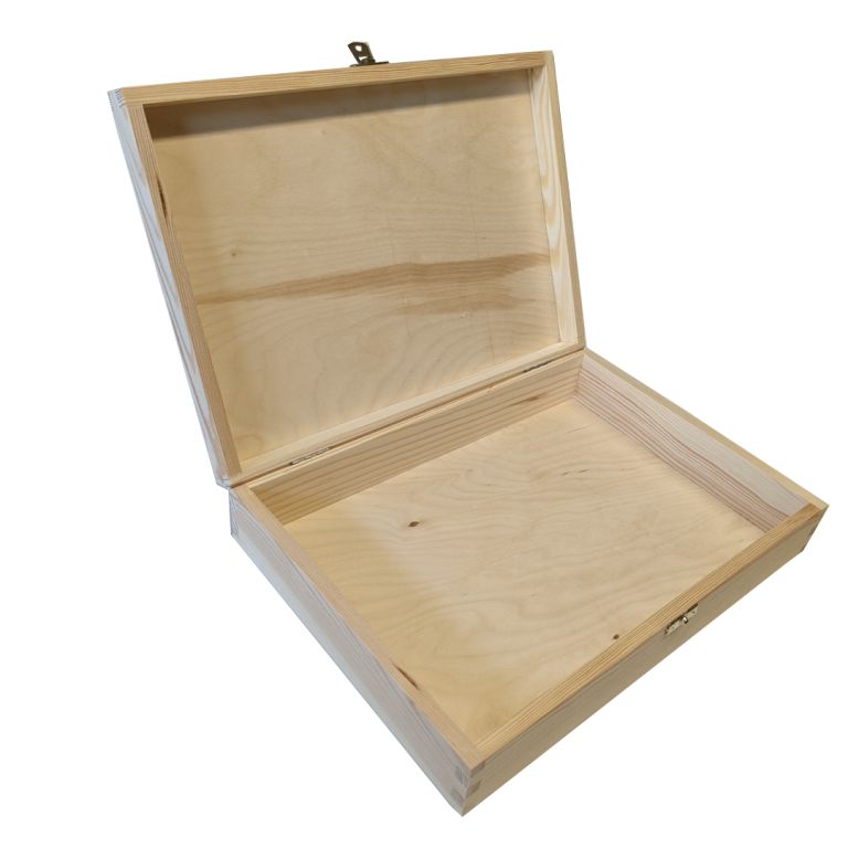 Drewniane pudełko wykonane jest z litego drewna sosnowego. Pudełko przyda się do przechowywania pamiątek, zdjęć, dokumentów. Jest niepowlekane i może być pomalowane dowolnym produktem przeznaczonym do drewna lub pozostawione w naturalnym stanie niepomalowanym.