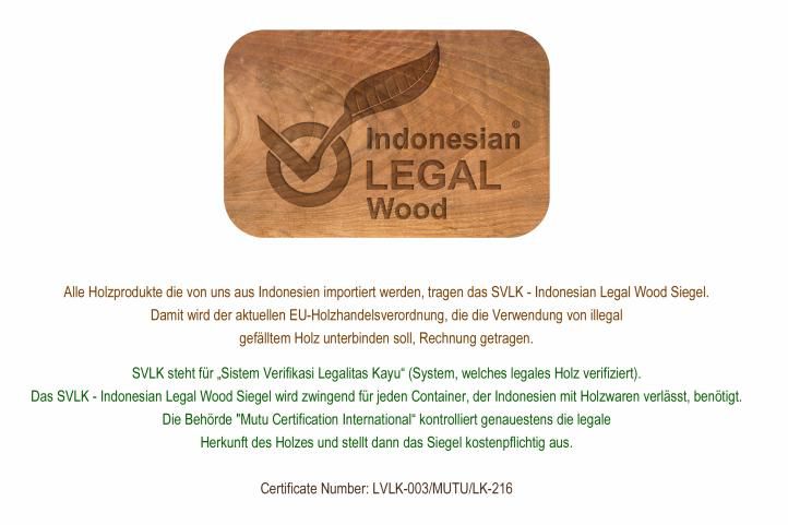 Ostrzeżenie! Drewno jest żywym materiałem, mniej pęknięć i stopniowe zmiany koloru to normalne zachowanie twardego drewna. Użyte drewno pochodzi z kontrolowanej obróbki drewna i uprawy.