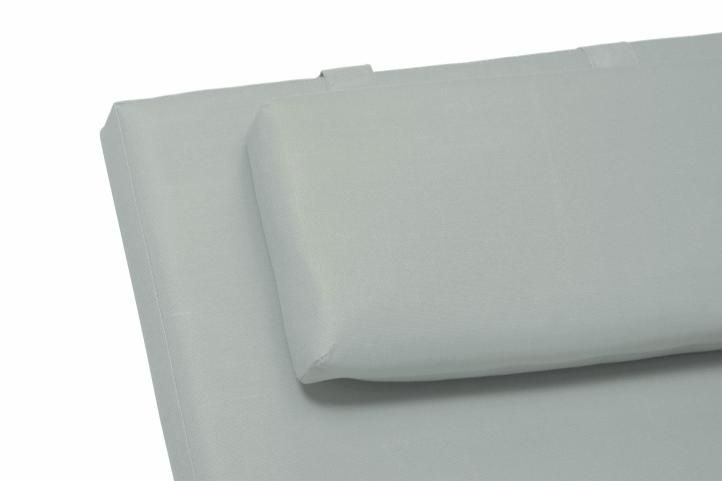 Wysokiej jakości, stylowa podkładka na krzesło ogrodowe w kolorze jasnoszarym, łatwa w utrzymaniu. Pokrowiec wykonany jest ze strukturalnego poliestru. Poduszka wyposażona jest również w poduszkę w części nagłownej podkładki. Dzięki ukrytemu wszytemu zamkowi możesz w każdej chwili zdjąć i wyczyścić pokrowiec. Gustowna tapicerka jest bardzo wygodna i zmienia krzesło ogrodowe w eleganckie i wygodne meble ogrodowe. Z tyłu podkładki znajdują się paski mocujące, za pomocą których można przymocować podkładkę do leżaka.