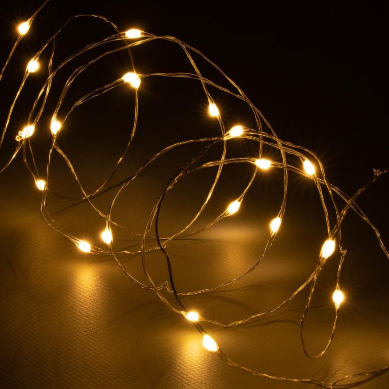 Łańcuchy świetlne z diodami LED są idealną dekoracją na Boże Narodzenie, ale mogą być używane do dekoracji wszystkiego. Można je wykorzystać w ogrodzie, na przykład udekorować nimi altanę ogrodową lub balkon. Dzięki temu miękko działającemu oświetleniu można rozjaśnić każde przyjęcie, ale także wesele. Diody LED umieszczone są na cienkim srebrnym przewodzie, dzięki czemu oświetlenie wygląda bardzo subtelnie. Łańcuch zawiera również timer, który utrzyma oświetlenie włączone przez 6 godzin po pierwszym włączeniu i bezczynne przez 18 godzin. Można wybrać funkcję timera lub światła ciągłego. Oświetlenie nadaje się wyłącznie do użytku wewnątrz pomieszczeń i jest zasilane 2 bateriami AA, które nie są dołączone do zestawu.