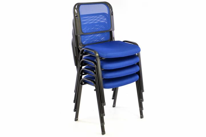 Krzesło biurowe do sztaplowania z tapicerowanym siedziskiem w kolorze niebieskim