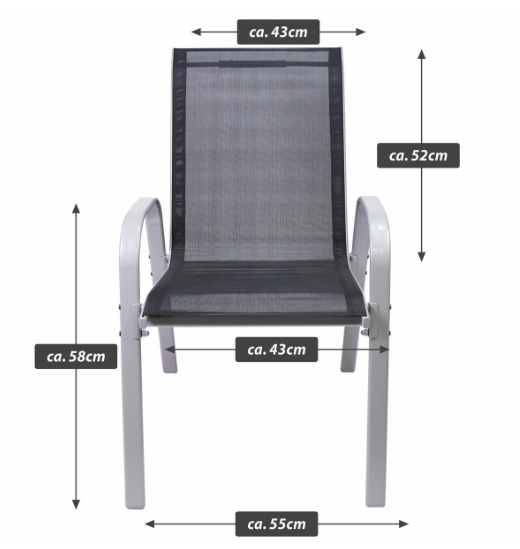 Krzesła BARI zostały wykonane z wytrzymałej stali oraz odpornego na warunki atmosferyczne tekstylenu, co gwarantuje łatwą pielęgnację i długą żywotność. Możliwość sztaplowania pozwala zaoszczędzić miejsce podczas przechowywania. Wymiary 90 × 55 × 65 cm i wysokość siedziska 42 cm zapewniają wygodę użytkowania. Idealne do ogrodu, na taras czy balkon.