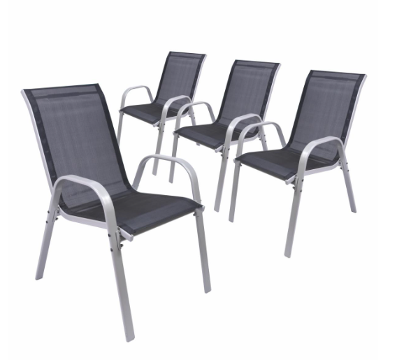 Zestaw 4 krzeseł ogrodowych BARI, stal i tekstylen, czarne