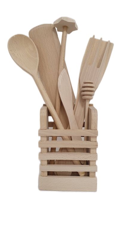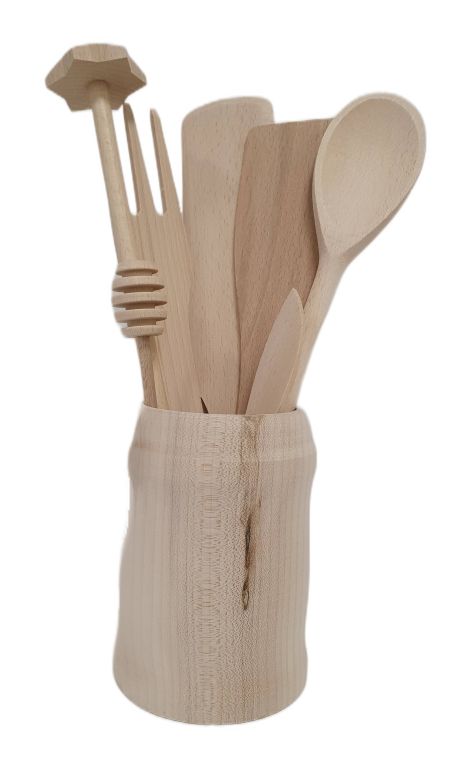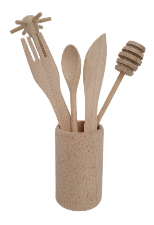 Odkryj urok naturalnego drewna w swojej kuchni! Ten kompaktowy zestaw przyborów kuchennych z buku wnosi ciepło i harmonię do codziennego gotowania. Przyjemny dotyk natury sprawia, że każda potrawa nabiera wyjątkowego charakteru, a elegancki stojak pozwala utrzymać porządek i oszczędzić miejsce na blacie.